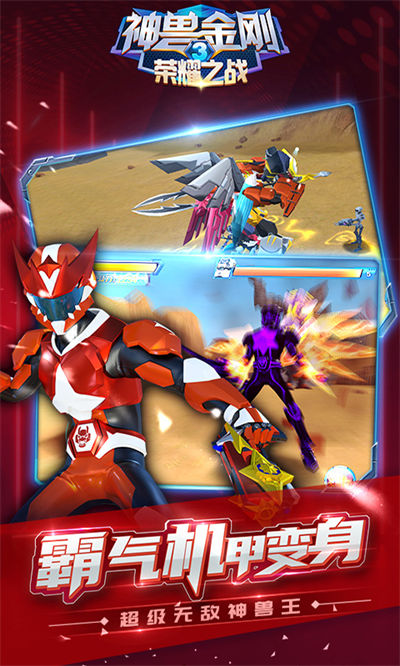 神兽金刚3荣耀之战游戏是一款由成都雷兽互动科技有限公司专为安卓用户打造的以神兽金刚为题材的动作手游,游戏为玩家准备了n多超霸气的机甲人物哦,喜欢的朋友赶紧来下载吧