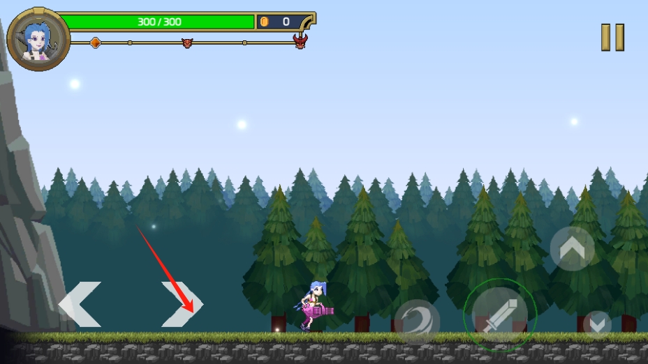 1、点击右侧方向按键,可控制角色向右移动,探索场景,推进游戏进度。