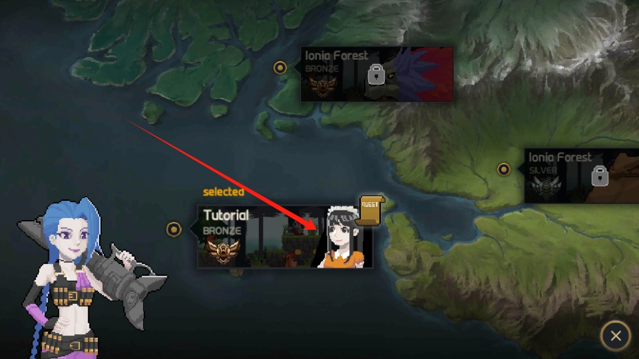 2、选择Tutorial关卡,可进入教程关卡,熟悉游戏操作和玩法,为冒险做好准备。