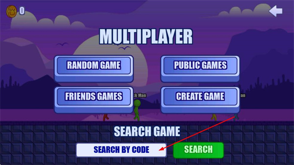 3、在多人游戏页面,找到SEARCHBYCODE输入框并点击,触发代码输入弹窗。