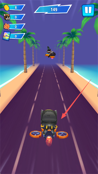 3、使用载具在道路上前进,持续收集道具,提升分数数值。