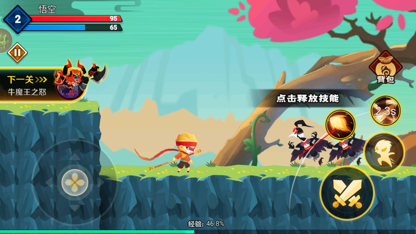 暴揍小精灵游戏画面精美,拥有卡通可爱的人物形象而且操作简单,轻松上手让玩家在其中享受到更多的乐趣!游戏中玩家需要扮演孙悟空的角色一路斩妖除魔,击败路上所有的敌人完成挑战即可。游戏中可以升级自己的技能和装备来提升战斗力,这样就能更快速地击败所有敌人!游戏充满了挑战性,有喜欢的玩家快来下载吧!