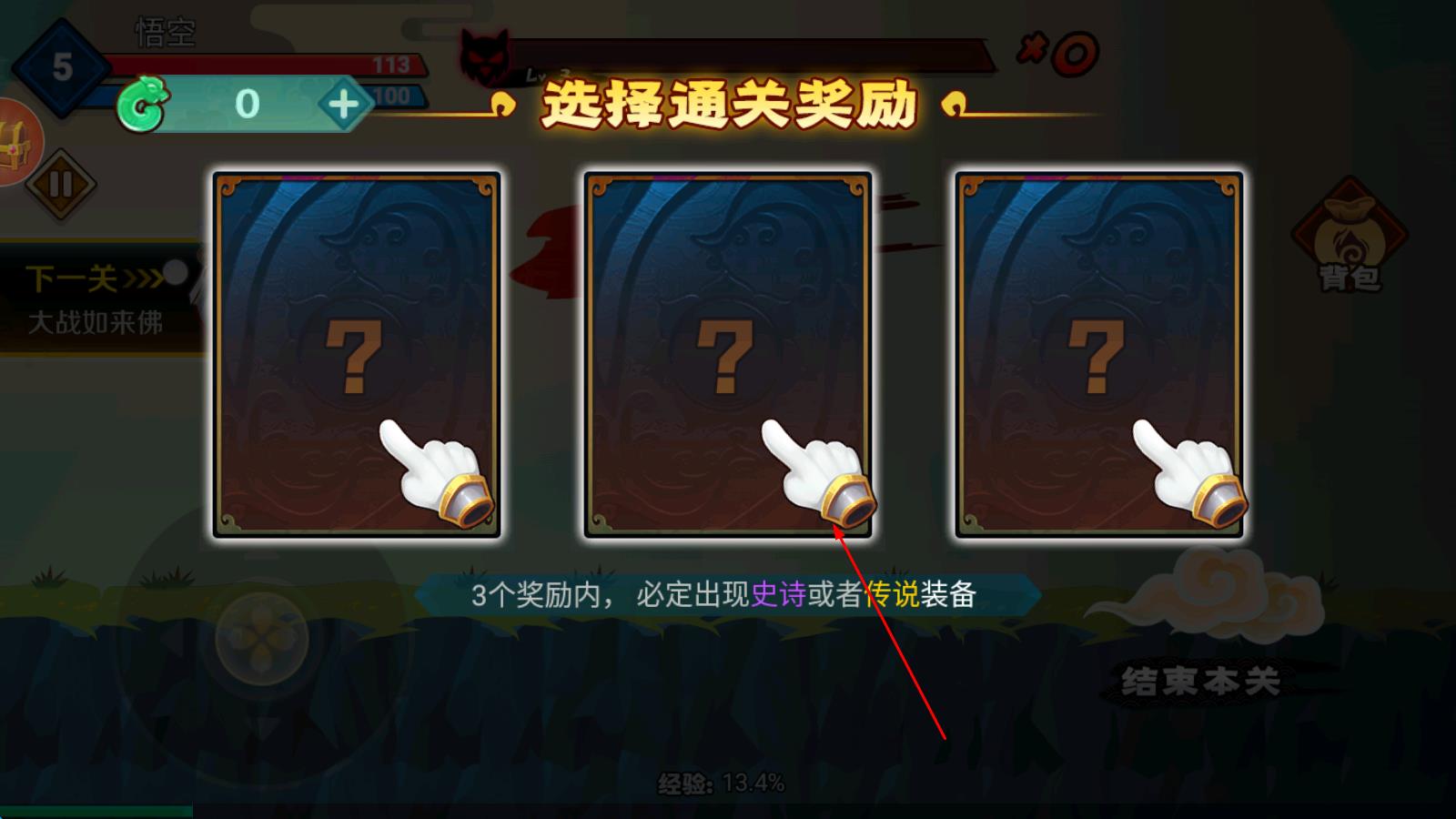 3、挑战各关卡BOSS,凭借熟练操作与技能搭配将其击败,获取强大装备完成升级,解锁全新地图与冒险模式,继续西游斩妖除魔的征程。