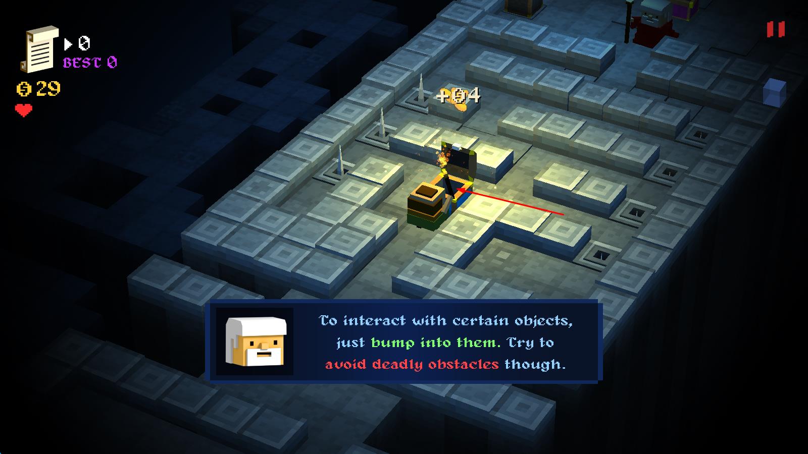2.注意宝箱中的金币并不需要你真的走到宝箱旁边才可以收集,离差不多两格距离就可以拿到。而黑暗的画面中大家要注意地上会突出来的突刺,随着游戏时间推移,突刺会越来越多,要注意。
