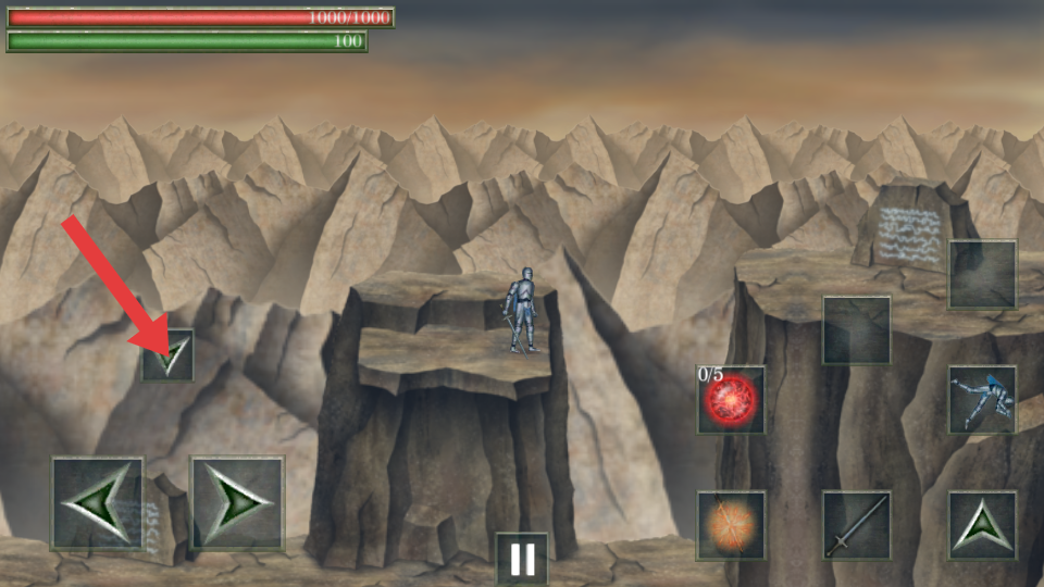 3、要改变角色移动方向时,点击箭头指向的方向按键,控制角色向左移动,探索左侧的场景或接近敌人。