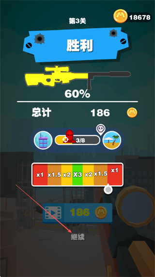 4、关卡胜利后,领取金币奖励,点击继续进入下一关,继续挑战。