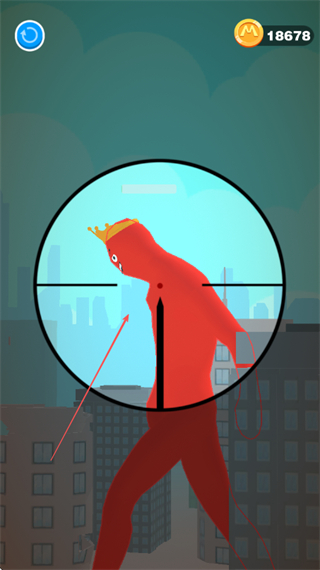 1、操控狙击枪瞄准城市中的红色巨人,寻找最佳射击时机。