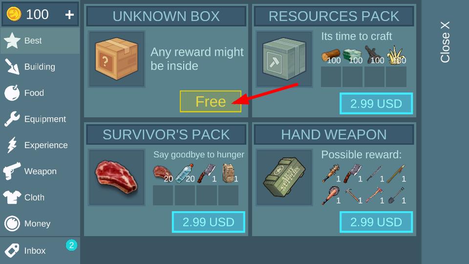 2、点击Free按钮,可免费领取未知宝箱,有机会获得资源、道具等奖励,助力生存和发展。