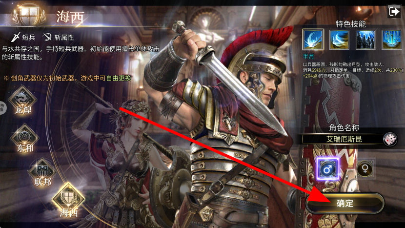 1、玩家开始游戏后,文明选择挑选心仪的文明,如海西等,设置角色名称等,确定后开启国战征程,为后续战斗奠定基础。