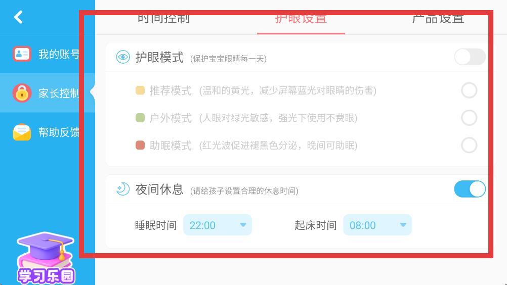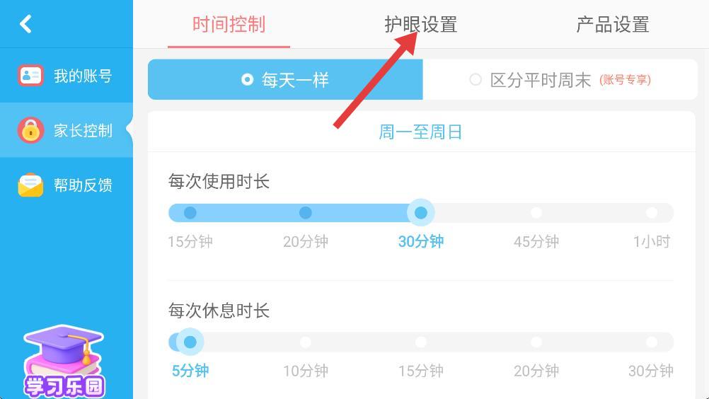 3、家长控制选项,点击护眼模式。
