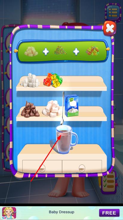 2、进入任务场景后,可能会遇到需要完成的子任务,进入室内场景,进行一些互动操作,像从货架上选择物品放入杯子中,完成特定的准备工作。