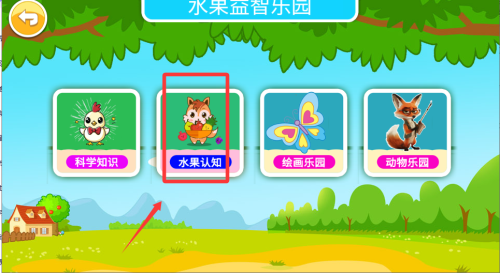 1、进入游戏后先选择水果识别模式,让孩子认识不同种类的水果。