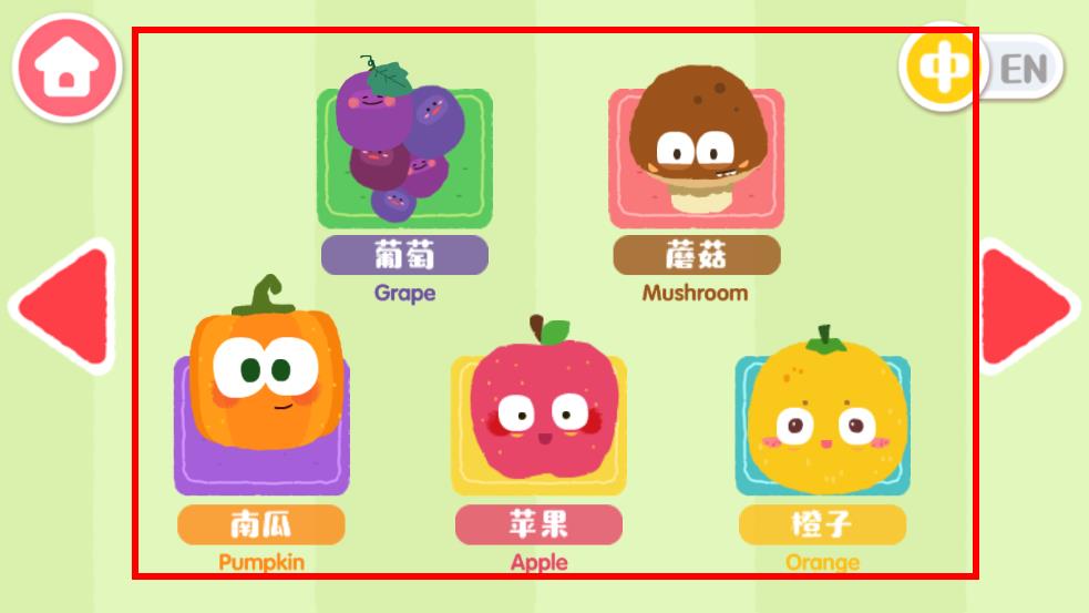 卡通食物形象,萌萌哒的声效,既增添了趣味性又给宝宝更直观的认知。