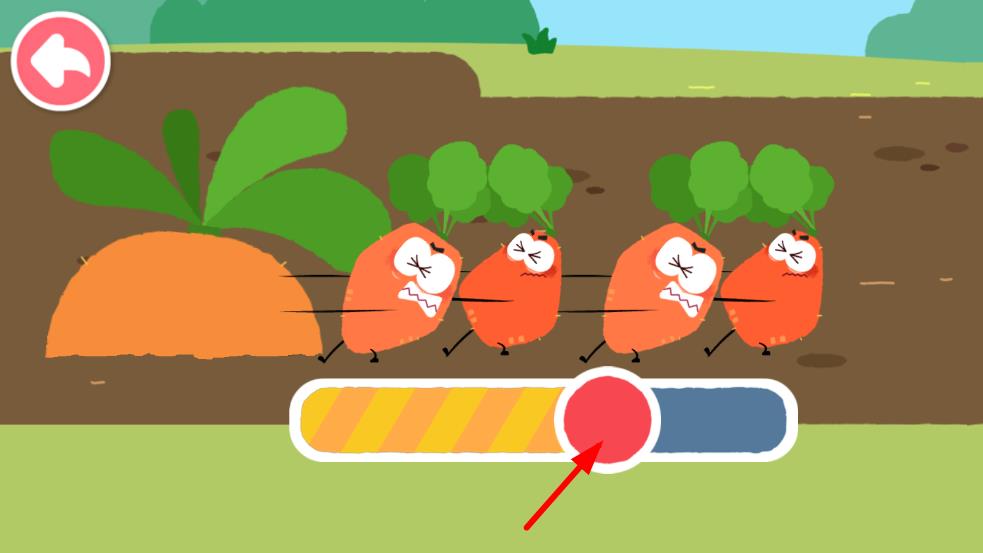 4、需要合力拔出大胡萝卜,按照屏幕下方的进度条提示,适时点击或滑动进度条按钮,帮助完成拔萝卜任务。