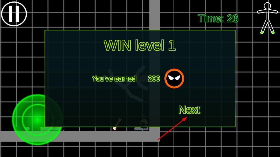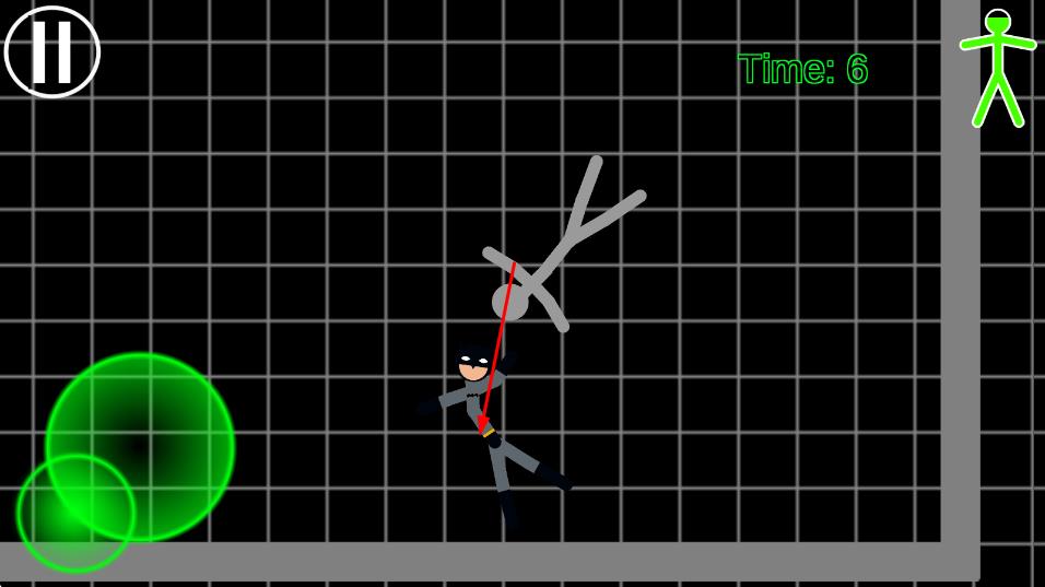 1、进入游戏通过操纵杆控制火柴人移动,利用墙壁施展特殊技能,在竞技场中与敌人展开格斗。