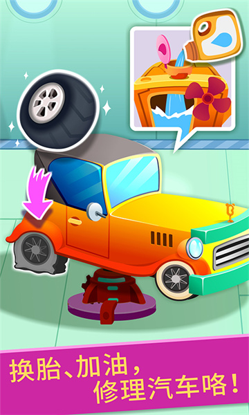宝宝巴士宝宝修车店正式版是宝宝巴士旗下的儿童教育类游戏,很多宝宝都对汽车非常的有兴趣,修车店可以满足宝宝的好奇心,增强它的动手能力,同时了解到更多的知识,感兴趣的朋友就来下载体验!