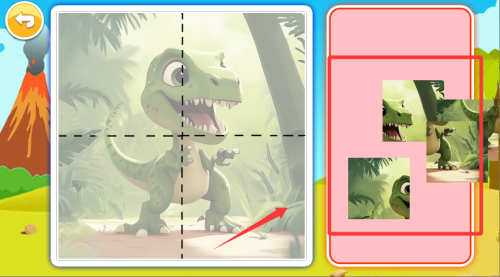 2、趣味小游戏集合,包含拼图、记忆配对、涂色等简单玩法。这些小游戏都融入了恐龙元素,在娱乐中巩固学习内容。