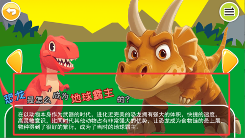 1、生动有趣的恐龙世界,采用明亮鲜艳的卡通画风,将史前生物以可爱形象呈现,特别适合学龄前儿童认知。