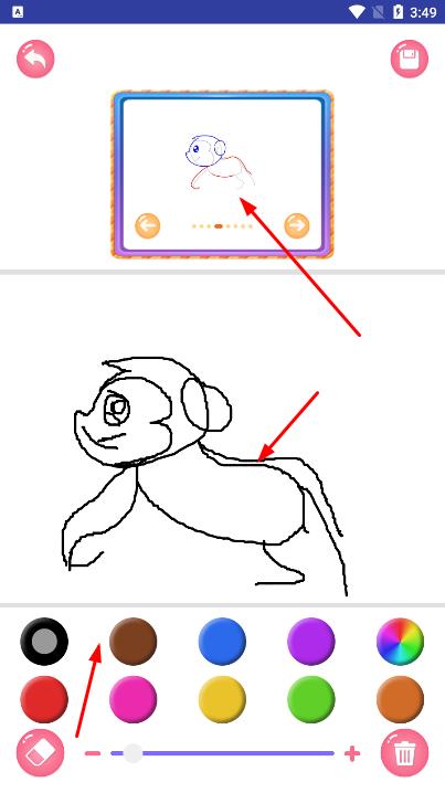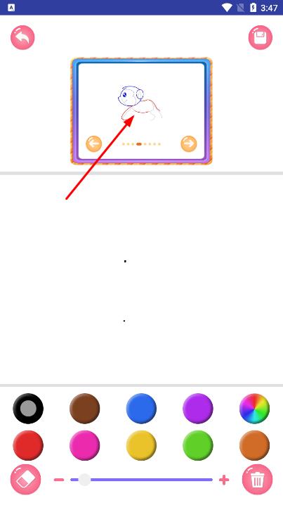 2、进入关卡后,上方显示需要绘制的图案轮廓,下方会出现各种颜色的颜料选项,根据提供的图画,进行绘制。