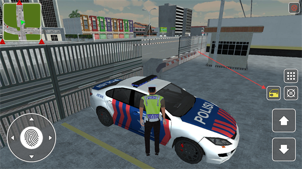 3、将人物移动至警车旁,点击车辆图标可切换至驾驶模式,还可操作喇叭、警灯等功能。