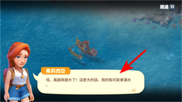 2、跟随剧情了解游戏背景,弗莉西亞因风暴船可能漏水,后续将开启农场冒险之旅。