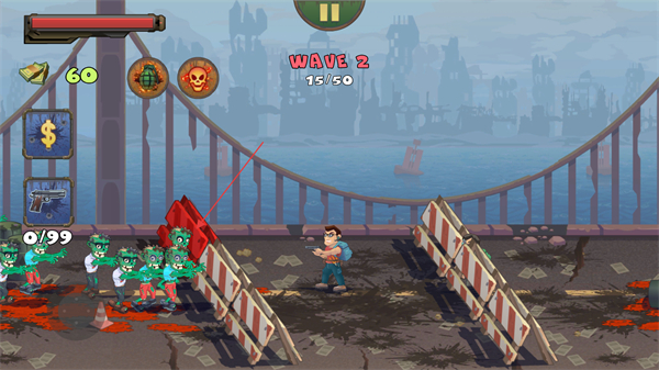 两个家伙和僵尸2内置作弊菜单是一款以末日僵尸为背景的横版射击类,玩家将踏入被僵尸全面统治的荒芜城市,断壁残垣间的每一次呼吸都伴随着生存危机,需要凭借武器与智慧搏出活路,双主角设定带来多元玩法,警察擅长防御支援能搭建临时掩体,牛仔精通精准射击可远程狙击,辅助菜单让操作更流畅,全方位呈现热血刺激的生存体验。
