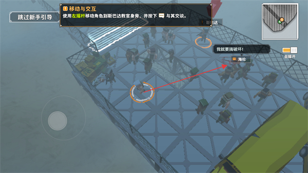 1、跟随新手引导,使用左摇杆移动角色到达斯巴达教官处,按下交互键与其交谈。