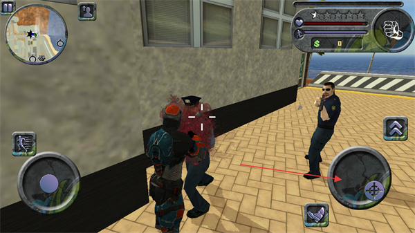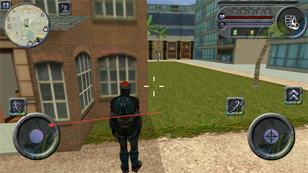 1、通过左侧虚拟摇杆控制角色移动,在城市场景中自由探索。