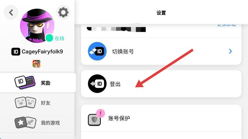 3、在ID的设置页面,找到并点击登出选项。