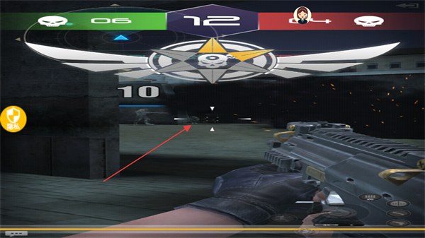 1、在对战场景中,观察上方分数和敌方位置,操控枪械瞄准,准备射击。
