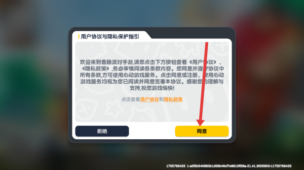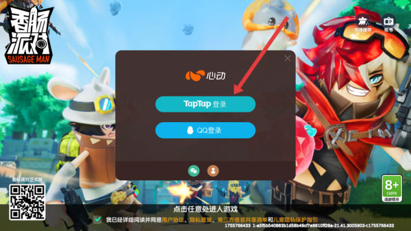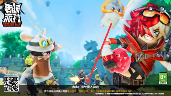 1、进入香肠派对启动界面,点击屏幕任意空白处,触发用户协议弹窗,开启游戏登录前的协议确认流程。