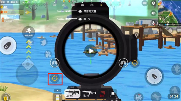 4、当调整好游戏的视角之后,玩家要是想要进行精准瞄准,可以点击屏幕中间的瞄准镜,以进行放大。