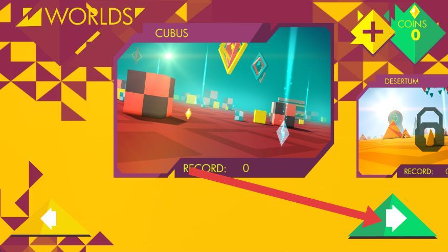 1、打开几何飞行游戏,在主界面点击右侧箭头图标,进入世界选择界面。