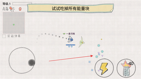 2、吃掉所有能量块,获取资源以提升飞机能力。