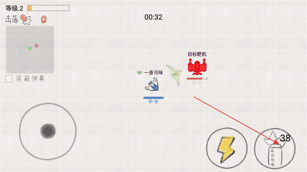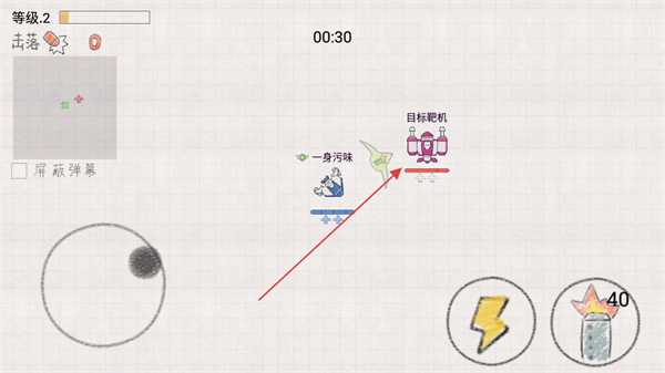 4、攻击时可使用炸弹技能,快速削减靶机血量,完成关卡。