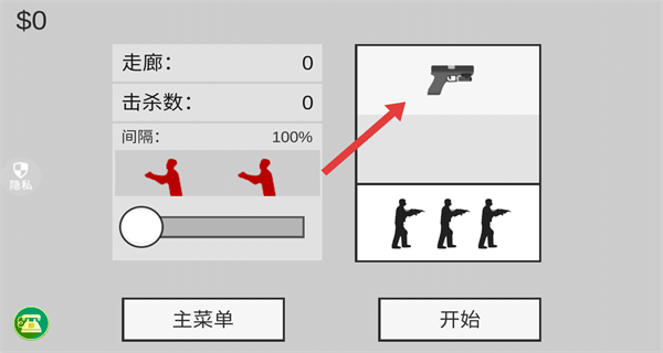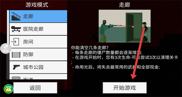 2、在游戏模式选择界面,选择游戏模式“走廊”后,点击开始游戏按钮。