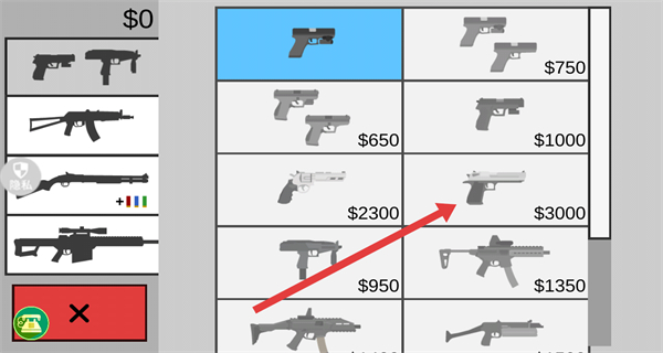 4、若想更换武器,可在武器列表中点击其他武器如价格为$3000的手枪进行选择。