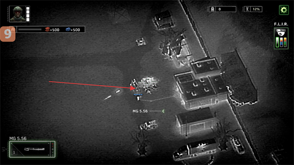 2、按提示操控MG5.56武器,清理道路上的僵尸,协助部队前进。