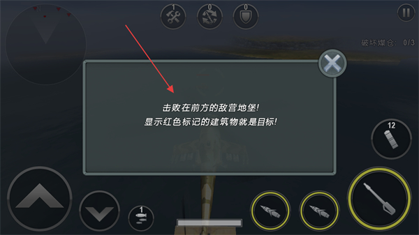 2、根据提示,定位显示红色标记的敌方地堡,准备发起攻击。