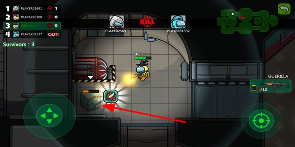 1、战场中击败敌人后,靠近其掉落的道具进行拾取,获取武器或恢复类物品,提升自身战斗续航能力。