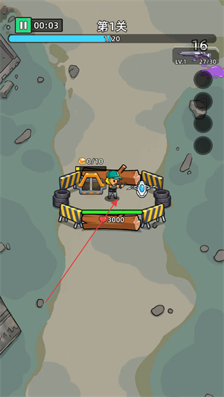 1、在第1关守护建筑,建筑有3000血量,需抵御敌人进攻。