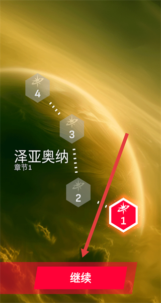 1、在章节选择界面,点击继续按钮,进入泽亚奥纳章节1准备开始游玩。