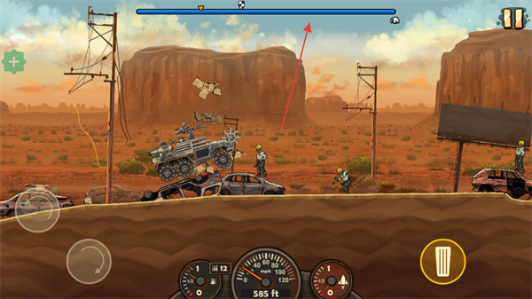4、持续行驶,碾压沿途僵尸,不断突破行驶距离,推进游戏进程。