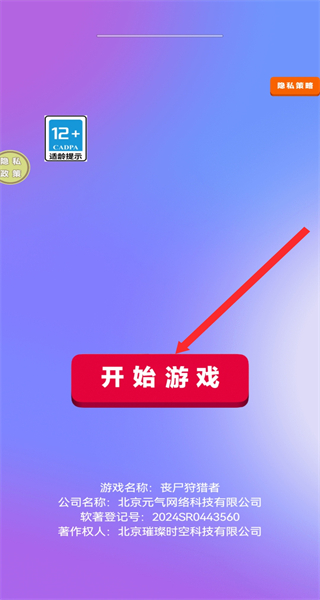 1、进入游戏界面后,点击开始游戏进入关卡,这是开启丧尸狩猎冒险的关键操作,准确点击即可进入游戏场景。