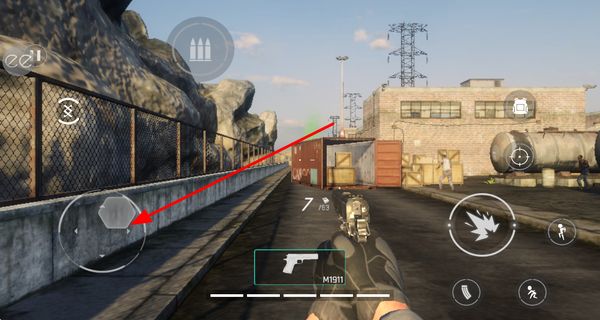 2、通过左侧的移动控件操控角色在场景中移动,调整位置以躲避危险或靠近目标,同时留意场景中的敌人分布情况。