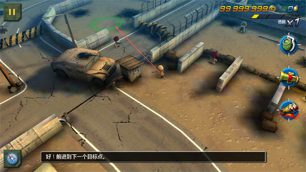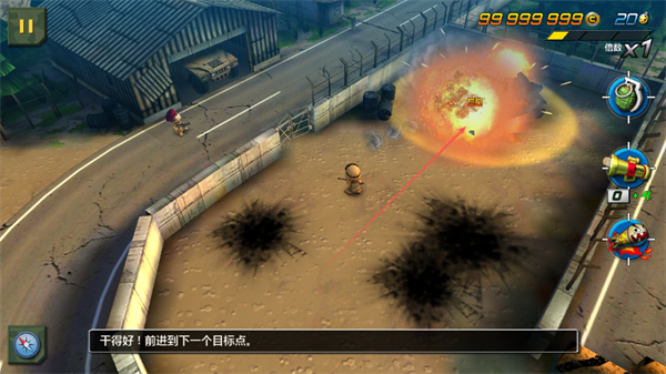 4、摧毁坦克后,继续前进到下一个目标点,持续消灭敌人,推进关卡进程。
