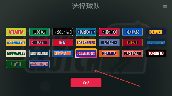1、在选择球队界面,从众多球队中选择自己心仪的队伍,选好后点击确认。