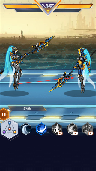 2、使用裁斩技能攻击敌方机甲,发起近战攻击。