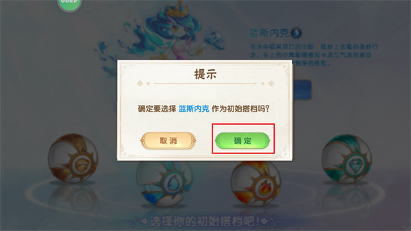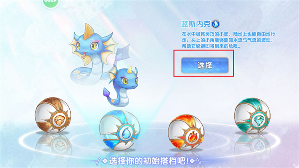6、点击对应的小球之后,玩家需要点击红色框框内的【选择】按钮,以进行宠物的选定;