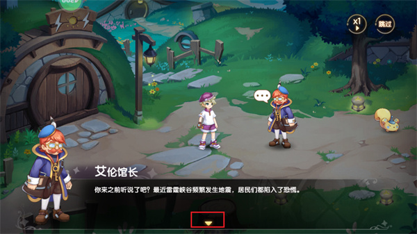 4、也可以点击屏幕右上角的加速按钮来进行对话的加速,或者是点击【跳过】按钮,来进行对话的跳过;